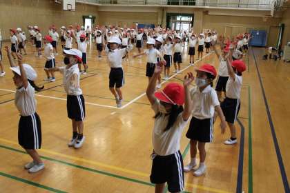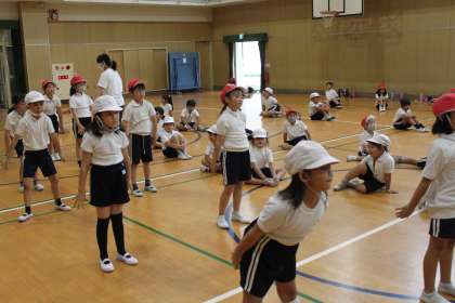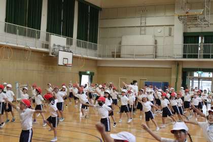 「ジャンボリーミッキー」の曲がかかると、子どもたちは自然と体を動かし、先生をよく見て、ダンスをし始めました。