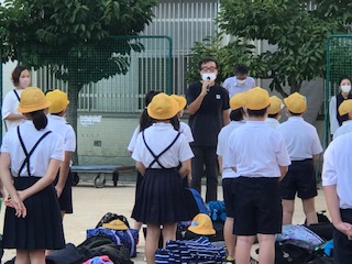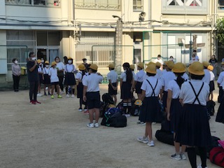 延期になっていた5年の林間学習ですが、無事に出発式の時を迎えました。参加メンバーは元気で、いってきまーす、にこやかでした。お見送りのみなさま、休日、早朝より、ありがとうございました。