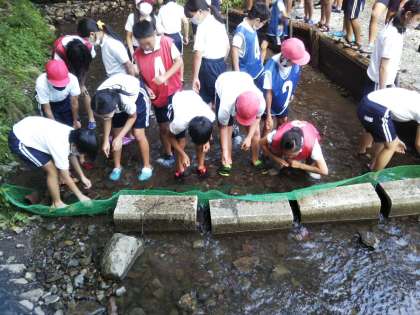 魚つかみが、始まりました。ターゲットは、ニジマスです。