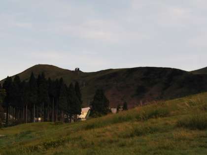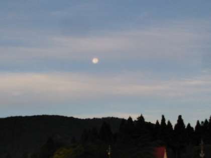 西の空には月が!今日は、写真の高丸山への登山があります。