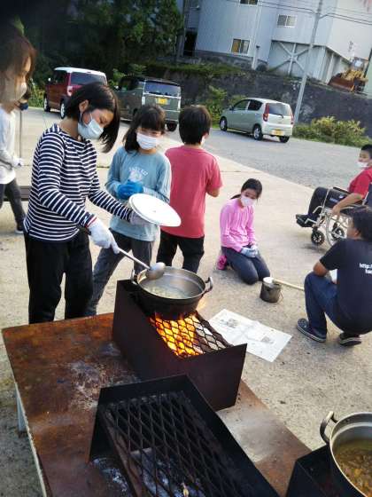 ご飯がおかゆやこげこげにならないように、カレーが生煮えにならないようにみんなで力を合わせて作りました。