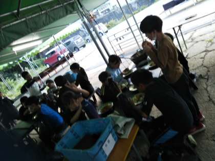 そして、ごちそうさまの後には、黒光りするなべや飯ごうをピカピカになるまで洗う。白樺館のスタッフさんの愛情溢れる後始末チェックが・・