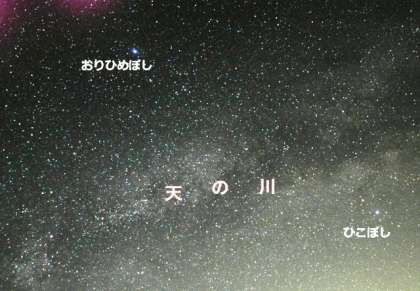 今週は、「七夕」に関する話をしました。七夕のお話は、中国の話がもとになっていることや、日本だけでなく、中国や韓国、台湾やベトナムにも似た行事があることなどを言いました。また、おりひめ星やひこ星がどんな風に夜空に見えるのかを下の写真で紹介しました。たまには、星空に目を向け、宇宙のことを考えるのもよいことではないでしょうか。都会の明るさと梅雨の時期で少し期待薄かもしれませんが。