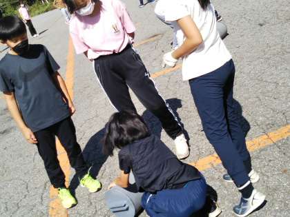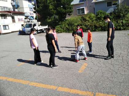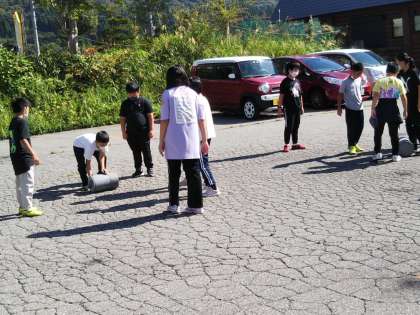 準備ができれば、後はひたすら転がします。足も使っていいそうです。グループで工夫して転がします。
