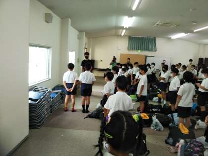 閉舍式です。3日間の体験活動をいろいろ準備、指導してくださったスタッフの方、美味しい食事、快適な環境を提供してくださった白樺館さんに代表児童が感謝のことばを発表しました。