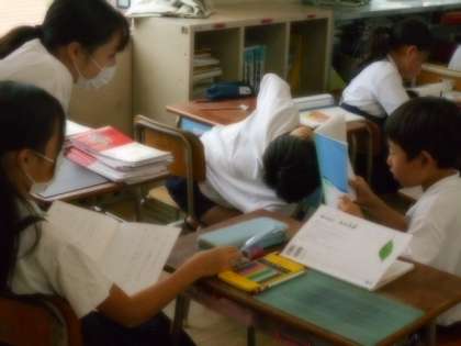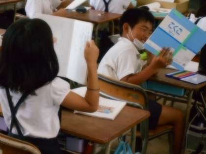 子どもたちは、じんざへの手紙を書いていました。