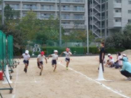 4年生の「徒競走」です。トラック1周と少しを走ります。
