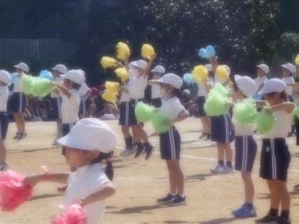 「ジャンボリーミッキー」「 ウブラブ(初心らぶ)」の2曲でダンスをする1・2年生に3年生から6年生の大きな拍手が送られました。