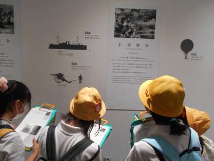展示物では、戦争中に貼られていたポスターや防空壕を再現したものを見学し、当時の空気感を体感していました。