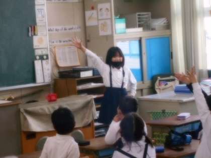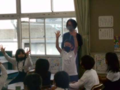 問題を出す児童が、指を出して、その数を英語ですぐに表現したり、拍手した回数を英語で表現したりたくさんのゲームをしました。