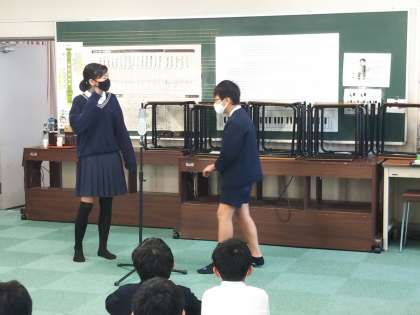 お笑いを通して、コミュニケーション能力をみがくという学習です。