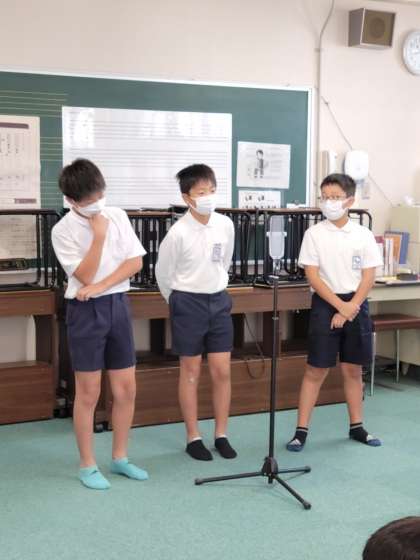 福島区役所の教育関連事業の一つの漫才ワークショップで、吉本興業のプロの漫才師コンビ「ズーマ」さんがスタッフに加わって、来校していただきました。
