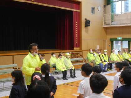 毎日、子ども達の安全を見守ってくださっている地域の見守り隊の方々に感謝を伝える会がありました。代表の方からご挨拶をいただき、参加された方の自己紹介もお聞きしました。。お顔やお名前を覚えて、たくさんのふれあいができたらと願っています、らあいにくの雨にもかかわらず、朝早くから集まっていただきありがとうございました。