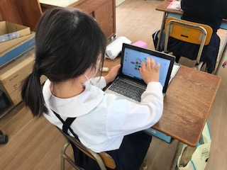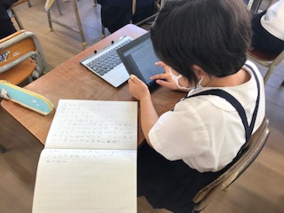 タブレットを使う時には、よい姿勢にも気をつけています。いつも机上の整理整頓をしっかりして、頭もスッキリ!学習に集中しています。