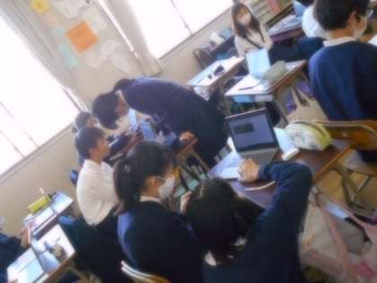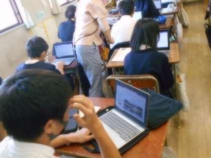 社会で学習した「戦争についての学習」を自分の課題に基づいてPCでまとめています。