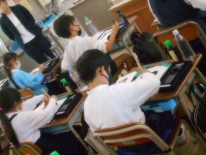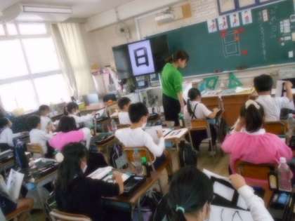 毛筆習字「日」の学習でした。始筆、終筆、止め、画の方向、間隔などいろいろ気をつけるところがありますが、のびのび書くことが大切です。