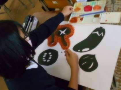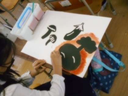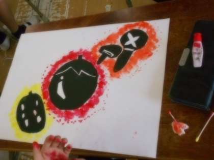 色をつけるのはスポンジでポンポンして、黒いところはぬらないそうです。
