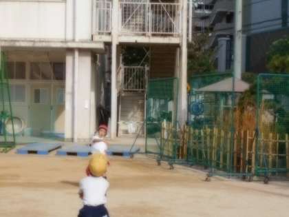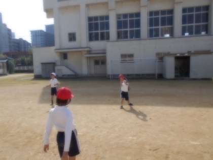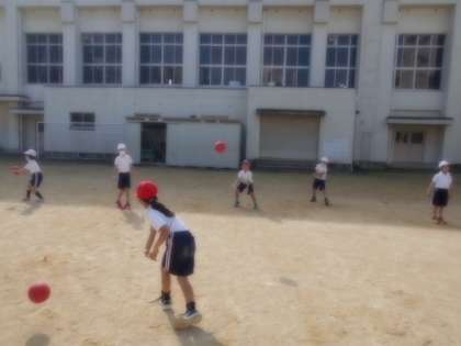 2年生が、ボール投げゲームやボールを使った運動遊びをしています。