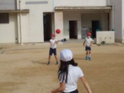 いわゆる「受けあい」なのですが、投げる距離や「どこをねらって投げるか」「うまくキャッチすることができるか」など、学習することは多いのです。
