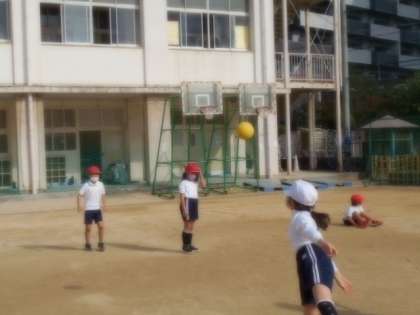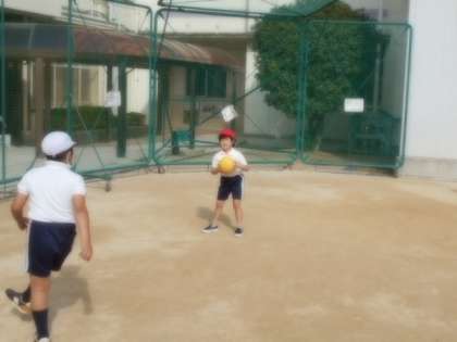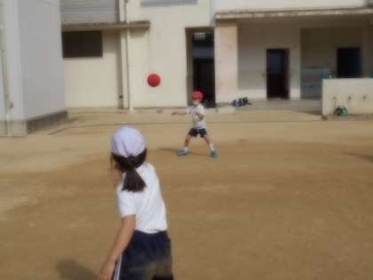 また、低いボールをしゃがんでうけたり、相手のうけやすいむねをめがけて投げている子もいました。