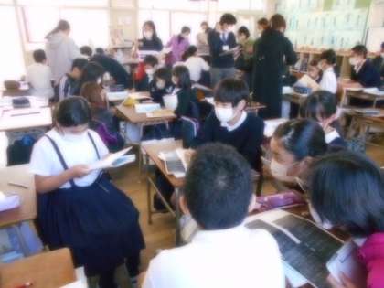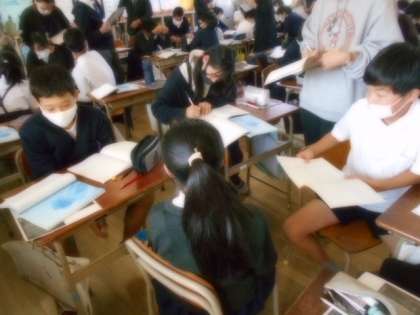 校内の研究授業です。「海のいのち」という物語の学習です。