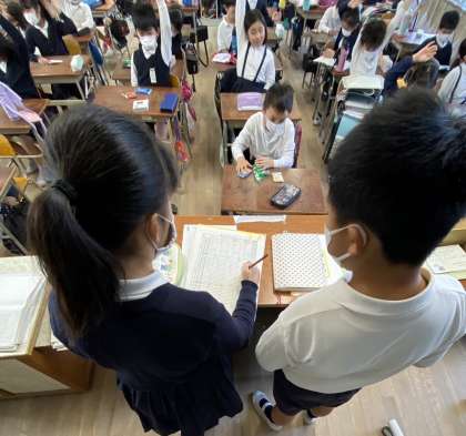 金曜日の朝には、保健委員会の児童が清潔検査を行っています。爪を切っているひと・ハンカチがポケットに入っているひと・はなかみがポケットに入っているひとを調べています。