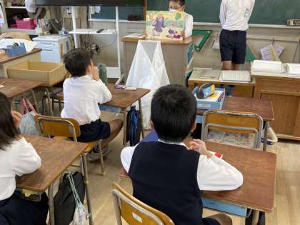 朝の読書タイムには、図書委員会が紙芝居の読み聞かせを低学年の学級でおこなっています。みんな楽しみにしています。読むほうも、聞く方も、お互いの学びにつながる活動です。