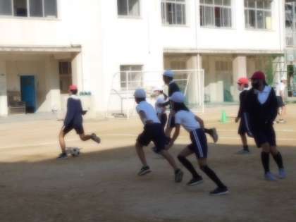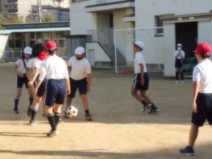 6年生が、体育でサッカーをしていました。
