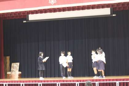 4年生が、講堂で学習発表会の練習を始めました。