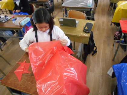3−1は、学習発表会で身に着ける衣装を作っていました。