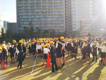 運動場の中心に白線を引いて、〇と×を考えて移動します。