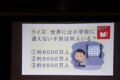 「世界に小学校に通えない子供はどれぐらいいるか?」「6000万人います」