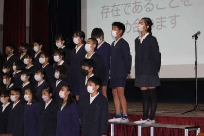平和について幅広く学習したことを原稿を見ずに、堂々とわかりやすく発表していました。