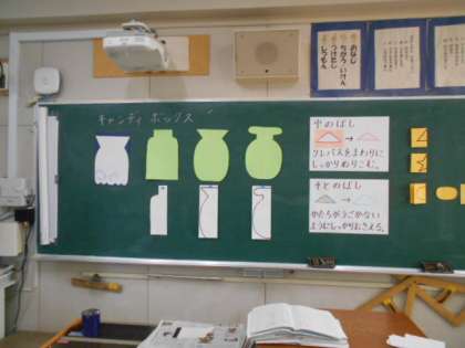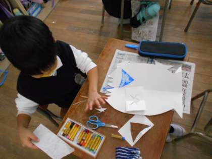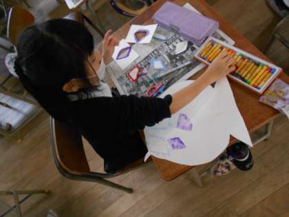クレパスでかたどって、中のばしや外のばしできれいなキャンディーを作っていました。