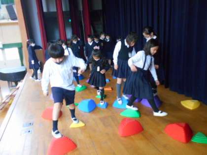 「バランスストーン」は、朝の児童集会で説明したので、「やりたい!」という子どもたちが多かったです。
