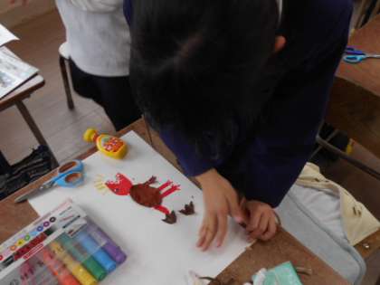 「ねこに見える」「恐竜に見える」「海の魚に見える・・・」無限のイメージの広がりと秋の深まり、季節を楽しむ心を感じる2−2でした。