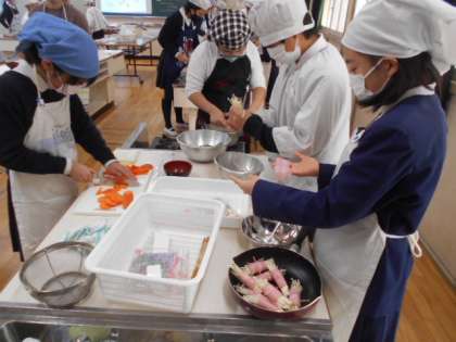 にんじん、えのき、いんげんをベーコンで巻きます。