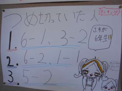 3−2のがんばりがすごかったです。6年生もさすがですね。