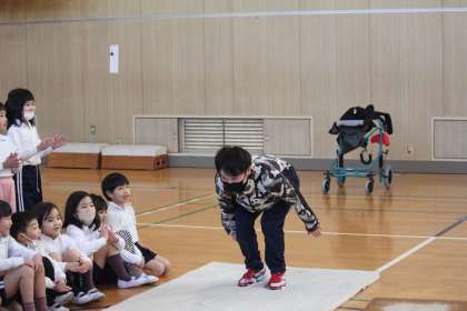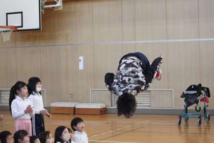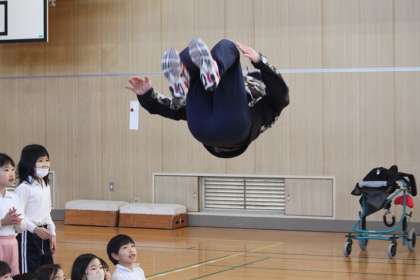 福島区の教育関連事業でゲストティーチャーとして、北京オリンピック男子体操団体で銀メダルを獲得された沖口誠先生をお招きして、1,2年生が体験学習をしました。