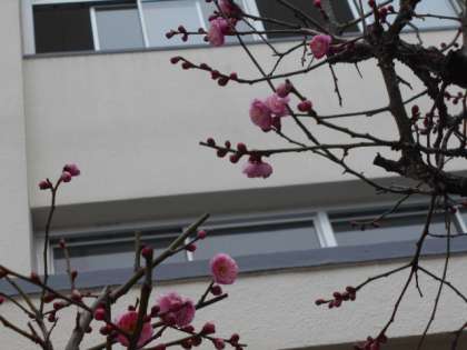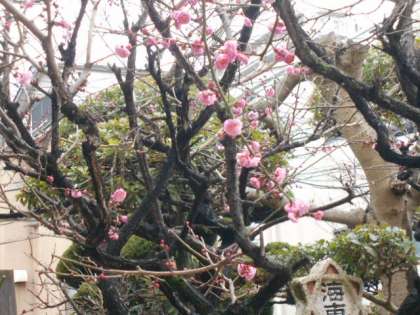 正門を入ると白梅があり、もう少し歩くと紅梅が開花していました。