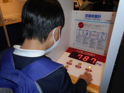 写真上は、惑星ごとに重力の違いがあり、重力の思い惑星では、小学生でも787KGの体重になりますという体験装置です。