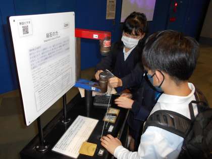 写真下は、磁力のすごさを体験できる装置です。