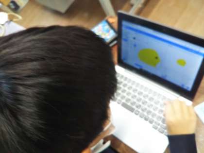 プログラミングでは、アプリを使って、動物を動かしたり、自分でキャラクターを作ったりしていました。とても楽しいそうです。
