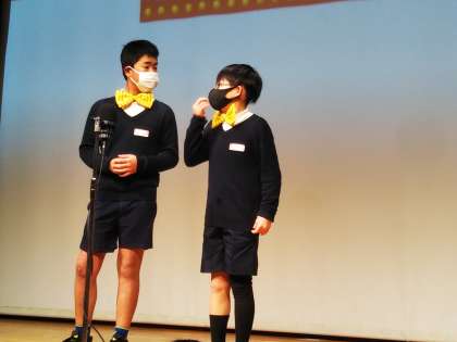 子どもたちは、様々な職業体験ができました。写真上は「〇乳石鹸」の製造体験でユニフォームも本物です。写真中と下は、劇場でのお笑いライブです。