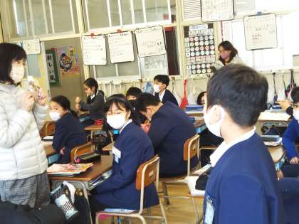 「あなたのヒーローはだれですか?」「わたしのヒーローは○○です。」「彼(彼女)は、わたしの○○(つながり)です。」という英語表現をまず学習しました。