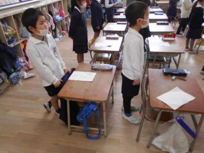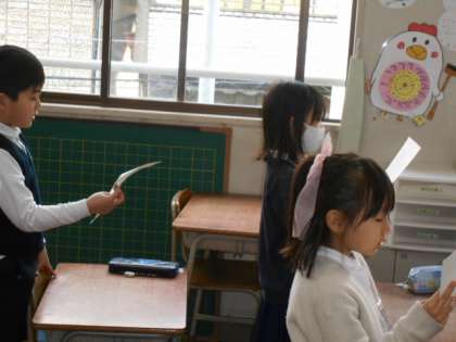 先生が、「ここを気をつけて歌うともっと上手になりますよ。」というポイントを子どもたちは、赤で印をつけていました。