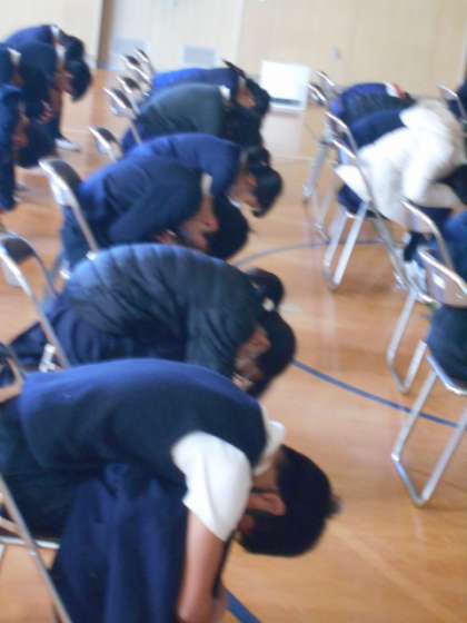 子どもたちは、かがみこんだ姿勢で息をこらえて、赤ちゃんの頑張りを体験しました。