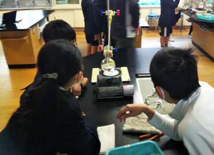 4−1の理科です。「水を熱した時の変化」について実験しています。