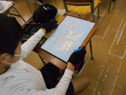 初めての彫刻刀なので、夢中になってけがをしないように気をつけています。