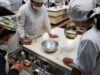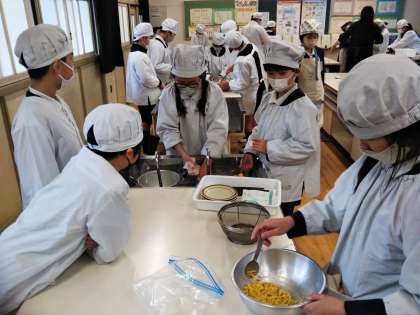 おやつの「マカロニ安倍川(あべかわ)作り」です。